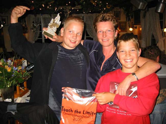Die letzte Etappe zum Ziel war für die mittlerweile erfahrenen Roadbookleser nur noch ein Kinderspiel. Im Ziel warteten die Wirte vom Landhaus Orbach schon mit einem hervorragenden Essen auf uns alle. Das gab uns Zeit, die Ergebnisse der Teilnehmer auszuwerten. Unmittelbar nach dem die letzten ihre Teller leergefegt haben, konnten wir zur Siegerehrung übergehen. Auf den Gesamtsieger wartete der Wanderpokal, der von nun an wieder verteidigt werden muss.